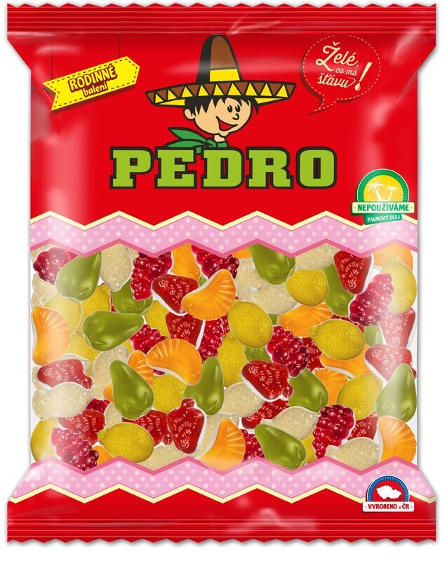Koostisosad: glükoosisiirup, suhkur, vesi, želatiin, happesuse regulaator: sidrunhape; puuviljamahla kontsentraat 1,25%, poleerimissegu: kookosõli, karnaubavaha; toiduvärv: kurkumiin, briljantsinine, paprikaekstrakt, antotsüaniid.