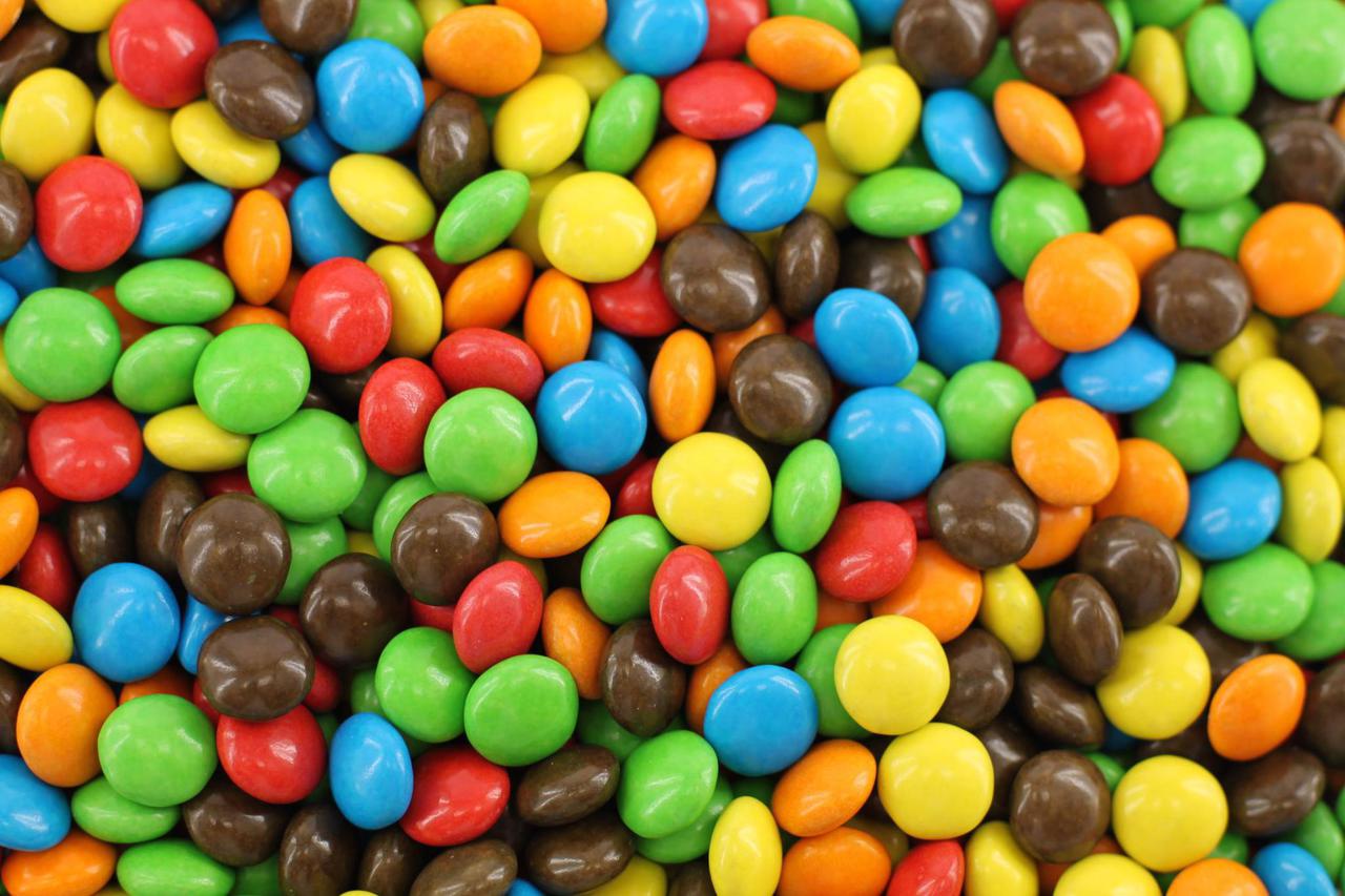 Värvilised suhkrukattega piimašokolaadi nööbid.