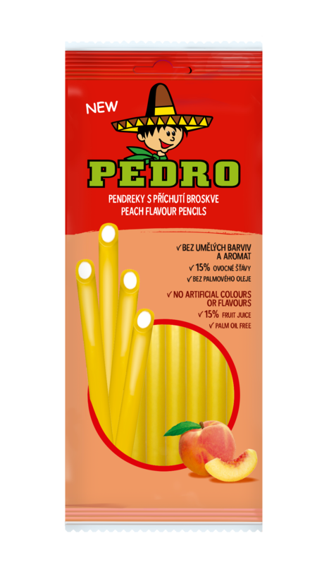 Virsikumaitseline täidisega kummikomm. 3,7% puuviljamahla kontsentraat = 15% puuviljamahlaga.